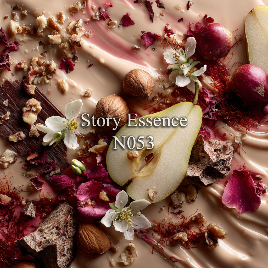 N053 - Es una historia inspirada en Guidance 46, una fragancia unisex que se siente como lujo denso y silencioso: pulida, íntima y poderosa. Empieza con una suavidad rosada y cremosa, con fruta madura y un destello especiado; luego se vuelve más rica y floral, y termina en un fondo ambarado-amaderado que se pega a la piel con una elegancia casi hipnótica.